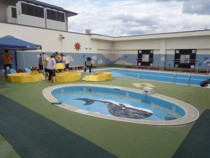 プールを先生たちみんなできれいに掃除して,水遊びをする用意ができました。来週には元気いっぱいプールで遊びたいと思います。楽しみに待っていてね!