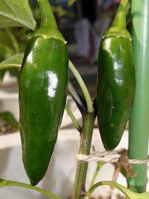 2枚目は,3歳児がクラスで育てているこどもピーマンです。にょきにょき伸びてきましたね。おいしそうです。