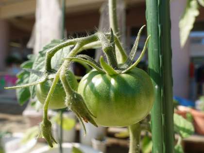 1枚目は,トマトです。大玉トマトとは子どもたちに伝えていないのですが,ミニトマトよりも大きくなっていることに子どもたちも気づいています。さて,どこまで大きくなるでしょう。