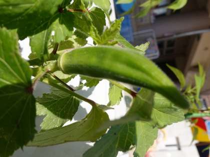 3枚目は,写真が90度回転していてすみません。オクラです。オクラってぶら下がってできるイメージがありますが,実は下から斜め上に向けてにょきにょきと生えていきます。