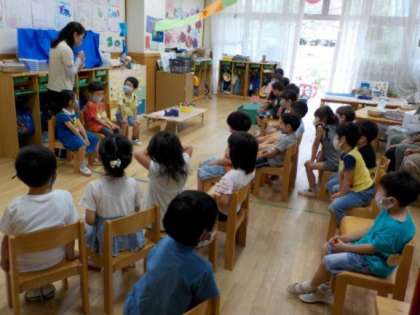 1学期最後の誕生会をしました。誕生児の子どもたちは名前を呼んでもらったり「おめでとう」と言ってもらえたり,とても嬉しそうでした。年長児では,司会の友達がインタビューもしてくれました。最後には先生からのお楽しみもあり,楽しい時間を過ごしました。