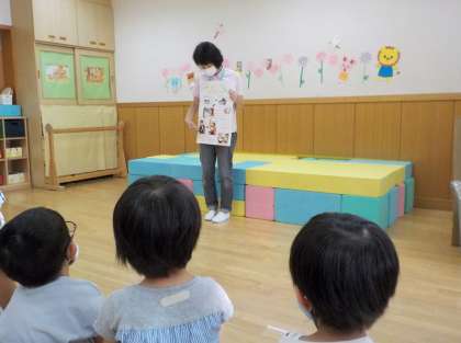 降園前には各クラスで始業式を行い,園長先生からお話を聞きました。2学期もたくさん遊ぼうね!