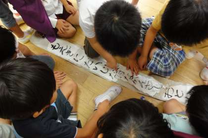 昨日はなかったのに・・・脚立でとって広げてみると,それはずっと探していた忍者の巻物の破れた部分の紙でした。つなげて読んでみると