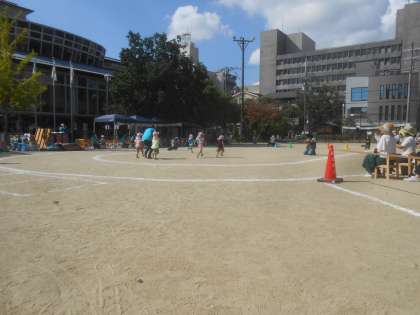 5歳児は,竹馬に挑戦。マットや坂道など自分で選んだいろいろなコースにチャレンジしました。足が痛くても最後まで頑張る姿が見られていました。リレーでは,チームの友達と力を合わせてバトンをつないだり,友達と懸命に応援したり,一人一人が自分の力を発揮して走りました。自信をもって取り組む姿が本当に頼もしい5歳児でした。また,ひとまわり大きく強くなった子どもたちの成長を感じました。
