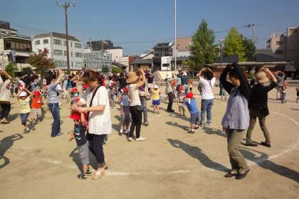 そして,今日の朝から4・5歳児の子どもたちと保護者のみなさんで一緒に公園の石拾いをしました。運動会で踊るマルモリダンスを親子で踊りました。みなさん,とても楽しそうに踊っていらっしゃいました。振付のまま踊るというよりも,音楽に合わせて親子で楽しく踊れたらいいな,と思います。当日,楽しみにしています。