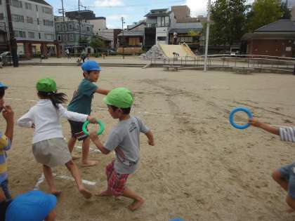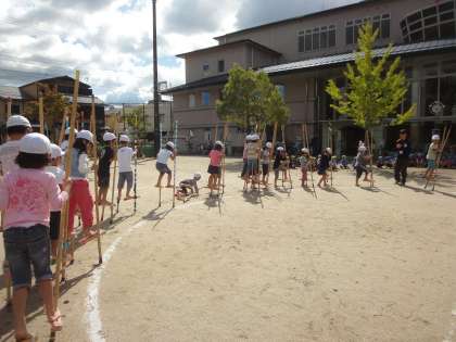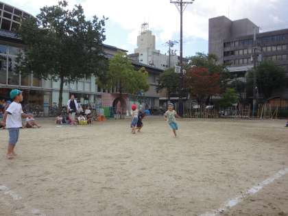 幼稚園の目の前にある竹間公園に、応援する子どもたちや先生の声が響き渡っています。