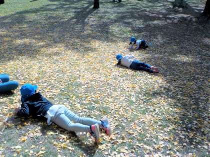 そのほかにも,イチョウの木の山の上から横になって転がったり,先生や友達と一緒にかくれんぼや追いかけっこをしたり,セミの抜け殻を探したりして遊びました。