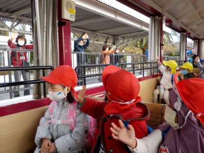 そして,おにぎり弁当を食べた後は,お楽しみのSL号に乗りました!「ポッポー!」という音を聞いて喜んだり,外を走る新幹線に手を振ったりと大満足の子どもたちでした。