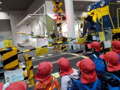 子どもたちの興味に合わせて学年やクラスごとに館内を回りました。3歳児は新幹線や電車の車体を見て喜ぶ姿がありました。4歳児は扇形車庫に止まっている汽車をじっくり見て気付いたことを伝えていましたよ。5歳児は切符を買って改札を通ってみたり,グループで好きなところを見たりと,楽しんでいました。