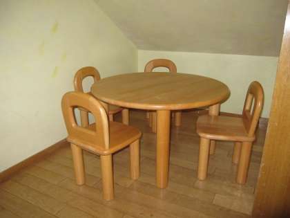 かわいいテーブルセットです。子どもたちの秘密の基地?にあります。どの組の子ども達も大好きです。すぐには見つからないかもしれませんが、探してみてくださいね。