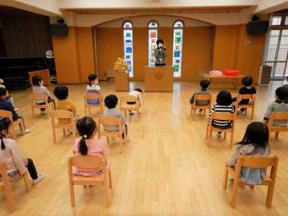 終業式では,園長先生のお話とともに,進級記念のプレゼントをもらいました。