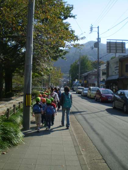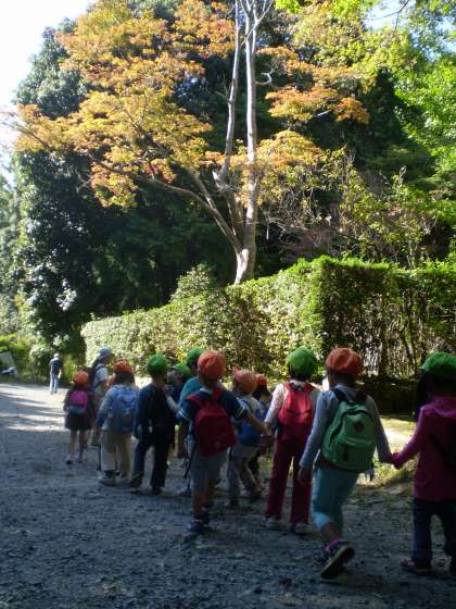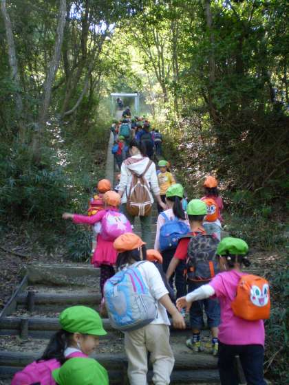 帰りは「大」の字の2画目の部分に沿って下山していきました。年中の子どもたちはもう疲れてしまってふらふらな子もいましたが,年長さんに支えてもらって下山できました。