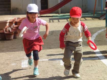 園庭でリレー