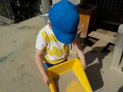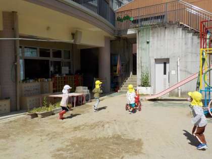 水曜日は園庭に出て遊んでいます。今は学年ごとに時間を決めて遊んでいます。