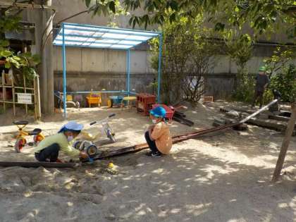 ブランコ、スケーター、三輪車は子どもたちの好きな遊びです。