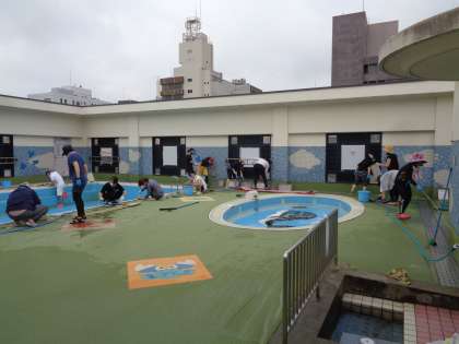 保護者のボランティアの方々がプール掃除をしてくださいました。掃除の後のプールを見て「プールがきれいになってる!早くプールに入りたい!」という子どもたちの声が聞こえてきました。これでまたこのひと夏,プールでの楽しい活動ができます!ボランティアの保護者の皆さん,本当にありがとうございました!