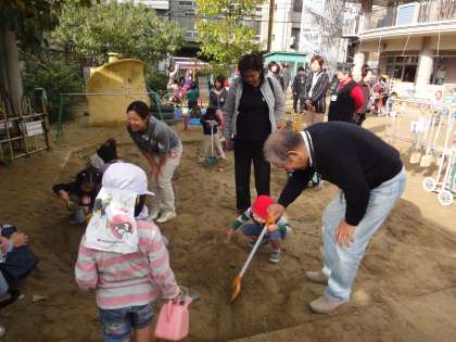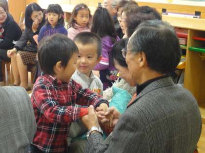 今朝、おじいちゃん、おばあちゃんと一緒に幼稚園に来た子どもたち。いつもとちょっと違ううれしそうな顔でやってきました(もちろん、お母さん、お父さんと来るのもとてもうれしいですよ)。