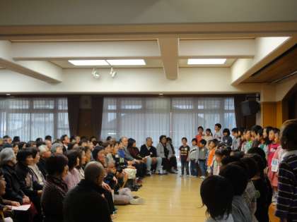 また、遊戯室でおじいちゃん、おばあちゃんにクラスごとに歌を聴いてもらって、たくさん温かい拍手をいただきました。