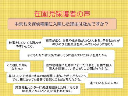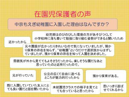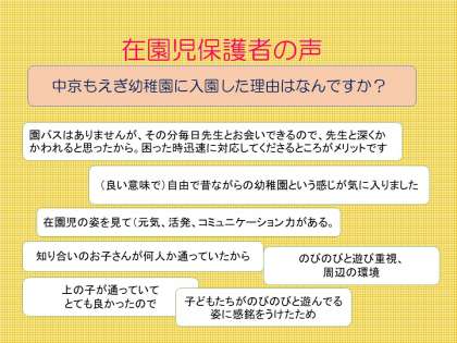 在園の保護者の声 中京もえぎ幼稚園に入園した理由はなんですか?