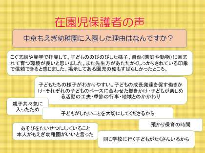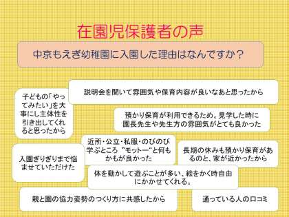 在園児保護者の声 中京もえぎ幼稚園に入園した理由はなんですか?
