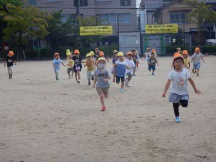 今日は,みんなで「エビカニクス」の体操をした後,公園でかけっこをしました。