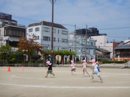 今日もいいお天気だったので、公園で「よーいどん!」と走ることを楽しみました。走り終わった後には、「楽しかった」「もっと走りたいな」と言っている姿もありました。