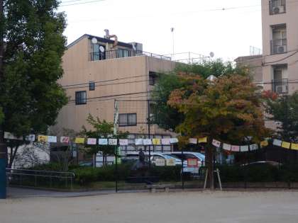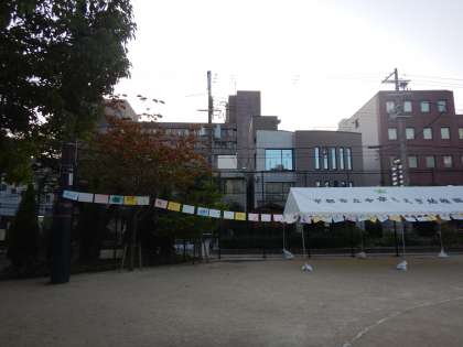 いつも遊んでいた公園に、テントを立てたり、子どもたちが絵をかいた旗を飾ったり、トラックも整備をしたり等、運動会の準備ができてきています。