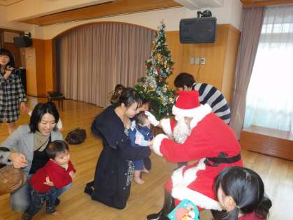 ちょっと怖くて泣き出す子、不思議そうに顔をのぞくように見る子、など、さまざまな様子でした。