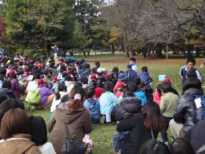 京都御池中学、高倉小学校、御所南小学校のお兄さん、お姉さんと一緒に、御所の探検をしました。