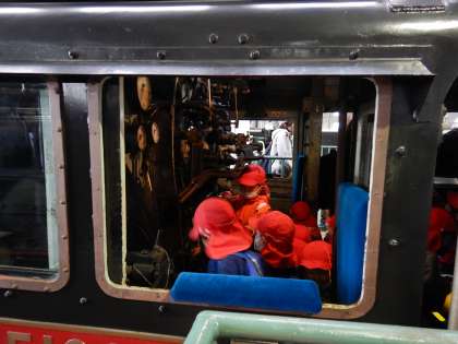 12月1日に全学年で鉄道博物館へ遠足に行きました。鉄道博物館では、たくさんの蒸気機関車を見たり、中に入ったり、上から見てみたり、終始ワクワクしている姿がありました。また、SLスチーム号に乗ると、煙がもくもくと出ていたり、大きな音が鳴ったり、目の前を電車が通ったりと、とっても貴重な体験ができました。初めての電車を使っての遠足でしたが、パパママティーチャーの方々にもお世話になり、安全に帰ってくることができました。ありがとうございました。