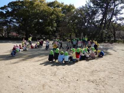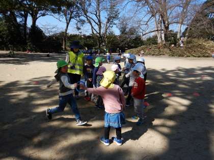 春が近づいていることを実感する気持ちのいい天気のもと、「お誕生月なかま」をしたり、リレー、鬼ごっこ、探検、大縄など、好きな遊びを楽しんだりしました。