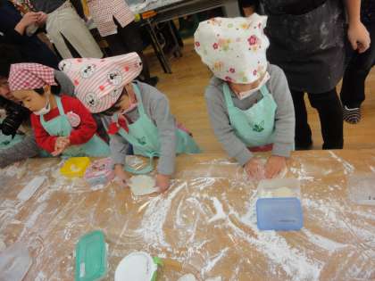 3歳児は初めての子どもがほとんどで、ドキドキしながらも初体験を楽しんでいました。