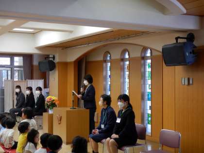 新しい先生をお迎えして、今日から新学期が始まりました。4歳児、5歳児の子どもたちは、ピカピカの名札をつけてとても嬉しそうにしていました。始業式の後は、新しい保育室や園庭で先生や友達とたくさん遊びました。