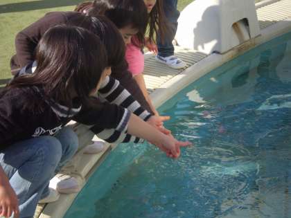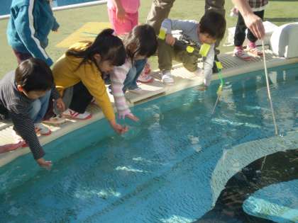 とみんなでプールを取り囲み,手に取った氷に心躍らせていました。