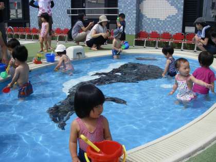水位は,普段幼稚園の子どもたちが使っているときよりも浅くしてありますので,