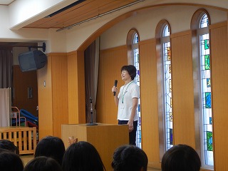 始業式では、落ち着いた様子で園長先生の話を聞いていました。2学期も暑さに負けずに、たくさん遊んでいきたいと思います。
