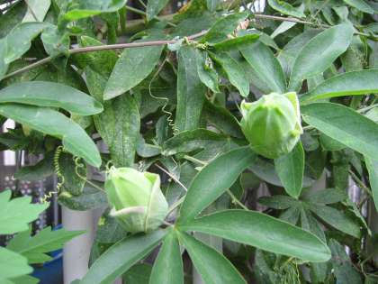 つぼみが二つ、もうすぐ咲くかな?これってなんの花?幼稚園にいっぱいあるよ。