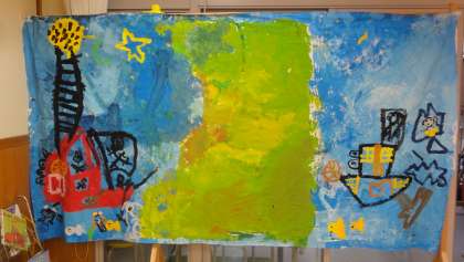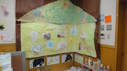 もも組(年少)ひまわり組(年中)すみれ組(年長)の生活発表会をしました。もも組はお医者さんになって怪我をした動物に薬を塗って治したり、ことりの歌をうたったりしました。大勢のお客さんに見てもらい、すこし恥ずかしそうでしたが、とてもかわいかったです。ひまわり組は「もりのでんしゃ」の劇遊び。自分たちで作った電車を走らせたり、動物になってのびのび遊んだりしました。古いこわれた電車なのにどこからか現れた運転手さんが運転すると動き出し,森の上をとび,星のきらめく夜空を走りました。すみれ組は力を合わせ心を合わせて「かいぞくポケットと月のかけら」の劇遊びをしました。2学期後半から自由な遊びの時間に船をつくって海賊ごっこを楽しんできた子どもたち。今もまだ続いている遊びの発想やイメージを劇遊びで力いっぱい表現し,最後は月のかけらを取りに行って、無事に人魚を助け出すことができました。