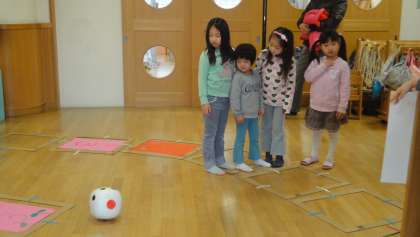 子どもたちは、自分がこまになって動くすごろくや、紙芝居の読み聞かせ、カプラの競争など楽しみました。