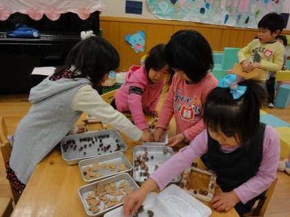 子ども達と木の実を使って遊びました。
