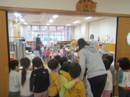 食べ終わると、「ありがとうって言いに行きたい!」と大根をお裾分けてしてくれた4歳児やお味噌汁をつくって下さった職員にお礼を伝えにいく姿も見られていました。
