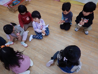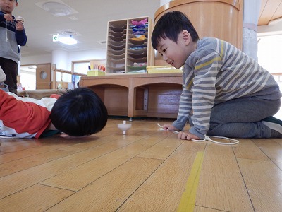 3学期が始まりました!!久しぶりの幼稚園を楽しみに、寒い中みんな元気に登園してきて、遊戯室に集まって始業式を行いました。「明けましておめでとうございます。今年もよろしくお願いします。」と園長先生と新年の挨拶をみんなでしました。友達や自分の素敵な所をいっぱい見つけて、毎日楽しく元気に過ごしていきたいと思います。そして、始業式の最後には、各クラスお年玉をもらいました。部屋に戻って早速開けてみると…一人一つずつコマが入っていました。新しいコマを一人ずつもらうと、早速友達と一緒に回して遊びました。明日からも毎日楽しみたいと思います。