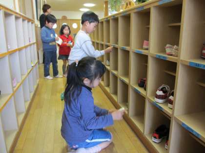 お部屋に帰ってから年長児は,自分達でマークを決めて靴箱に自分のシールを貼ったり,ロッカーに貼ったりしました。
