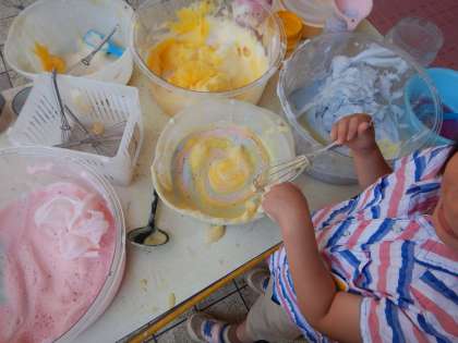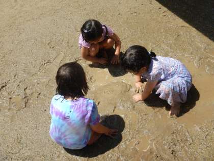 泡や水、泥で遊ぶことが大好きな4歳児の子ども達。色々な試しをしながら泡を混ぜたり、泡たっぷりのアイスをつくったりしながら遊んでいます。今日はとっても暑かったので園庭で水遊びも楽しみました。水遊びのあとは園庭に水たまりや魅力的な泥の場がいっぱい…!泥団子をつくったり感触を楽しんだり、今日はダイナミックに、たっぷり水や泡、泥で遊んだ子ども達でした。来週からはプールも始まります!楽しみですね!