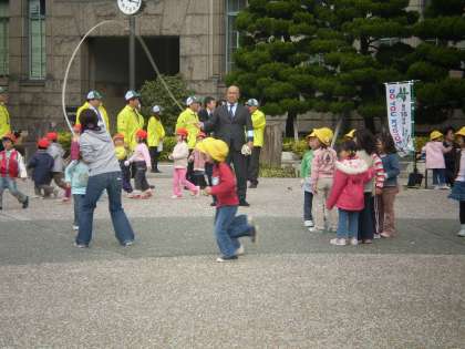 風の強い日で、凧がよくあがり子どもたちは喜んでいました。