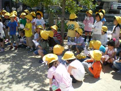 幼稚園では,毎月月末にごみゼロ隊の日を設け,ごみゼロ隊員になって,公園や幼稚園をきれいにしようという取り組みをしています。4月27日は初めてのごみゼロ隊の日。5歳児は,降園前にいつも使っている竹間公園のごみ拾いを親子でしました。