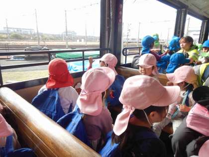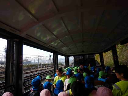 各学年で館内を見たり、扇形車庫で蒸気機関車を見たりしてから、スチーム号に乗りました。蒸気の出る音に驚いたり、新幹線や電車を見つけると喜んで手を振ったりしていました。