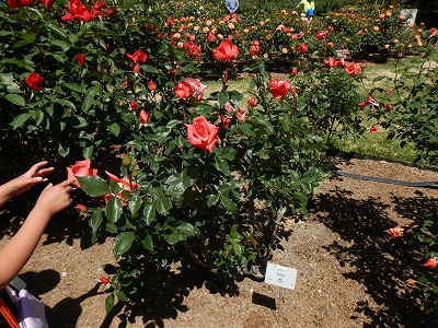 温室に入ることを楽しみにしていた子どもたち。初めて観る植物や異国の雰囲気に興味をもって発見を楽しんでいました。唇にそっくりな色形の“ホットリップス”を見つけて驚いたり、大きなヤシの木やサボテンに「わたしたちが小さくなったみたい!」と感動したりしていました。咲き始めのバラやボタン、シャクヤクの花など色とりどりの花も見ることができました。木陰でおにぎりも食べて、丸太遊具で遊び、植物園を満喫しました。お家でまた話を聞いてみてください。