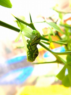 休み明け、幼稚園に来ると、なんと黒かった幼虫があおむしに変身していました!
