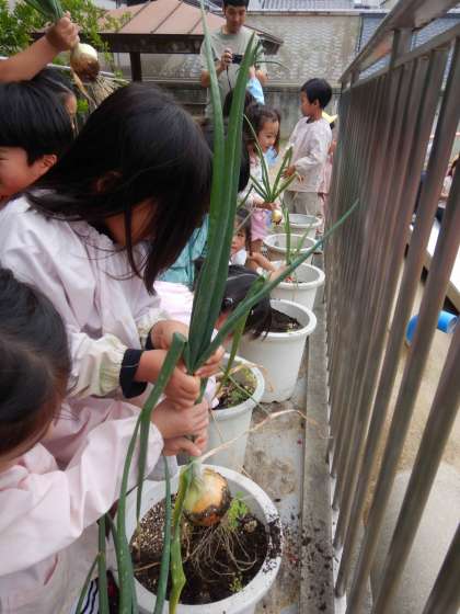 (5歳児)タマネギを収穫したよ